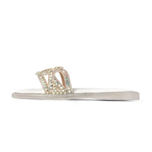 RY-74TPR Silver Crystal & Multicolored Accent Embellished Flat Sandal | Gold