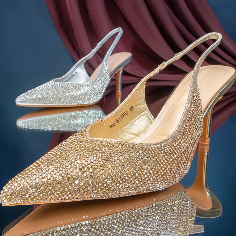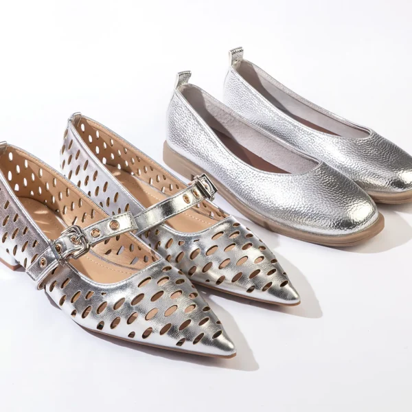 MLD011RUB Silver Metallic Flat Sandal With Crystal Details | Champagne