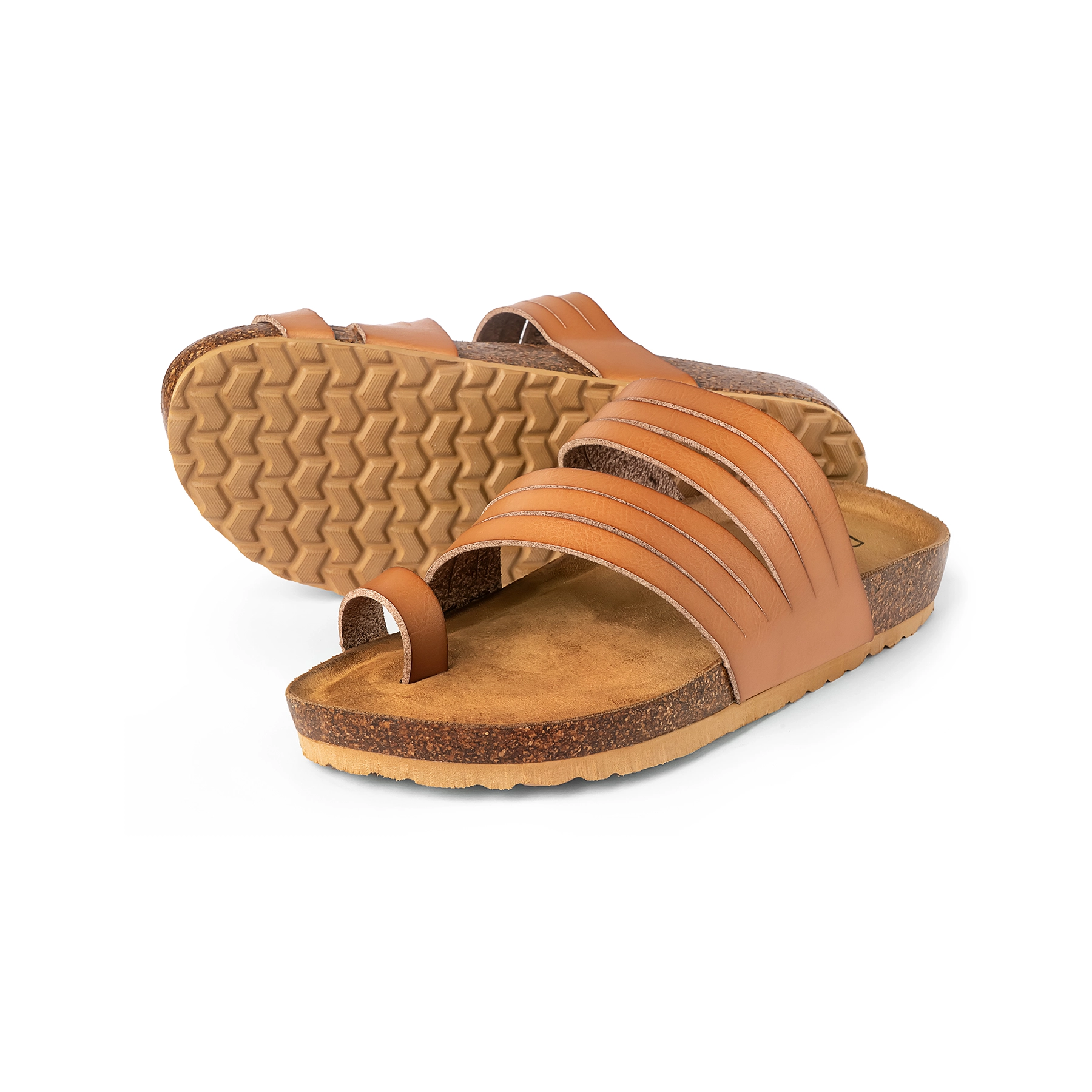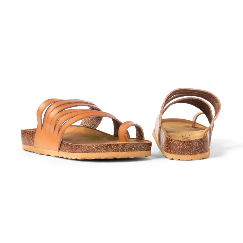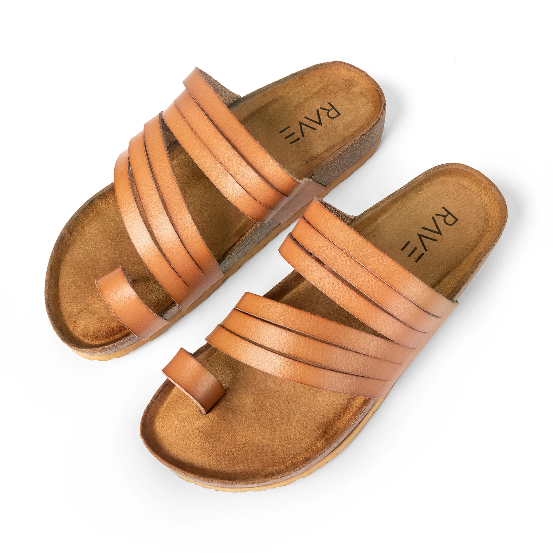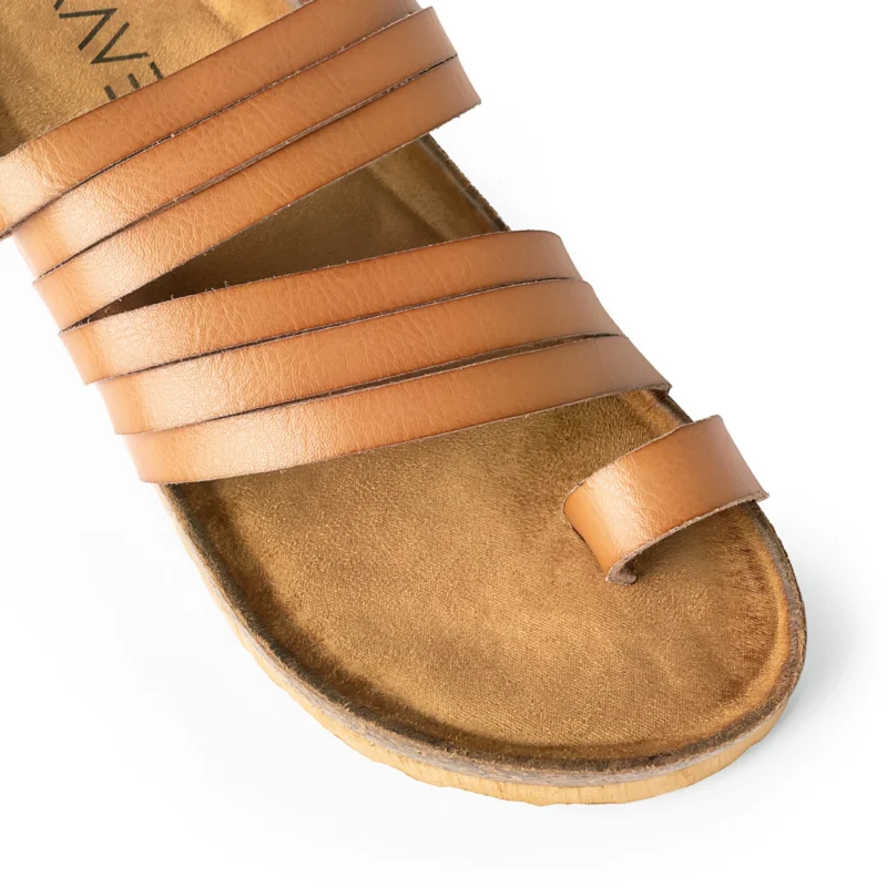 Toe Ring Multi Strap Comfort Slide Sandal | Beige