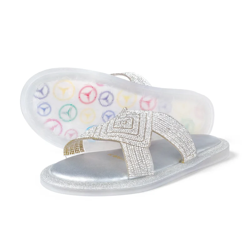 Upper Material – Crystal detailed crisscross strap in rubber upper