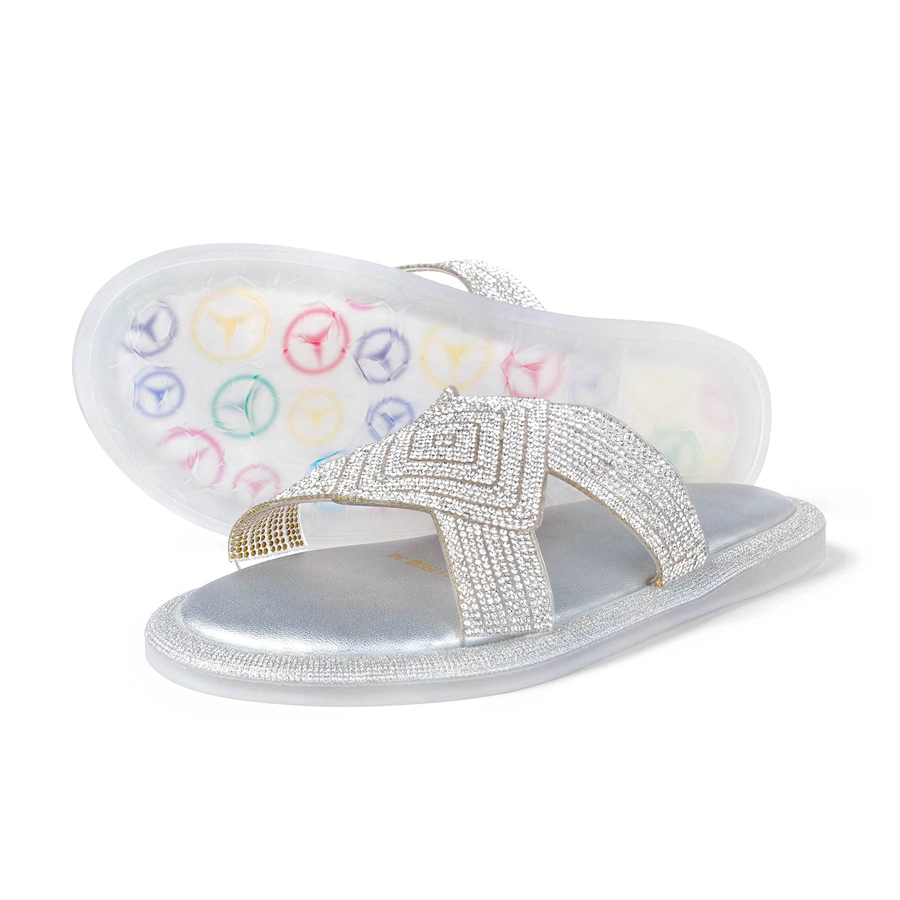 Upper Material – Crystal detailed crisscross strap in rubber upper