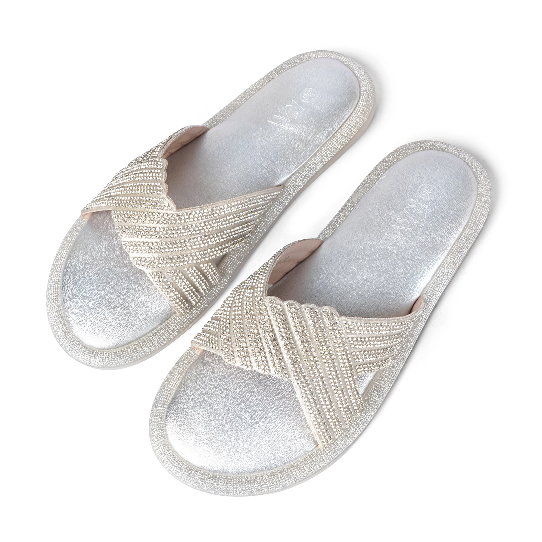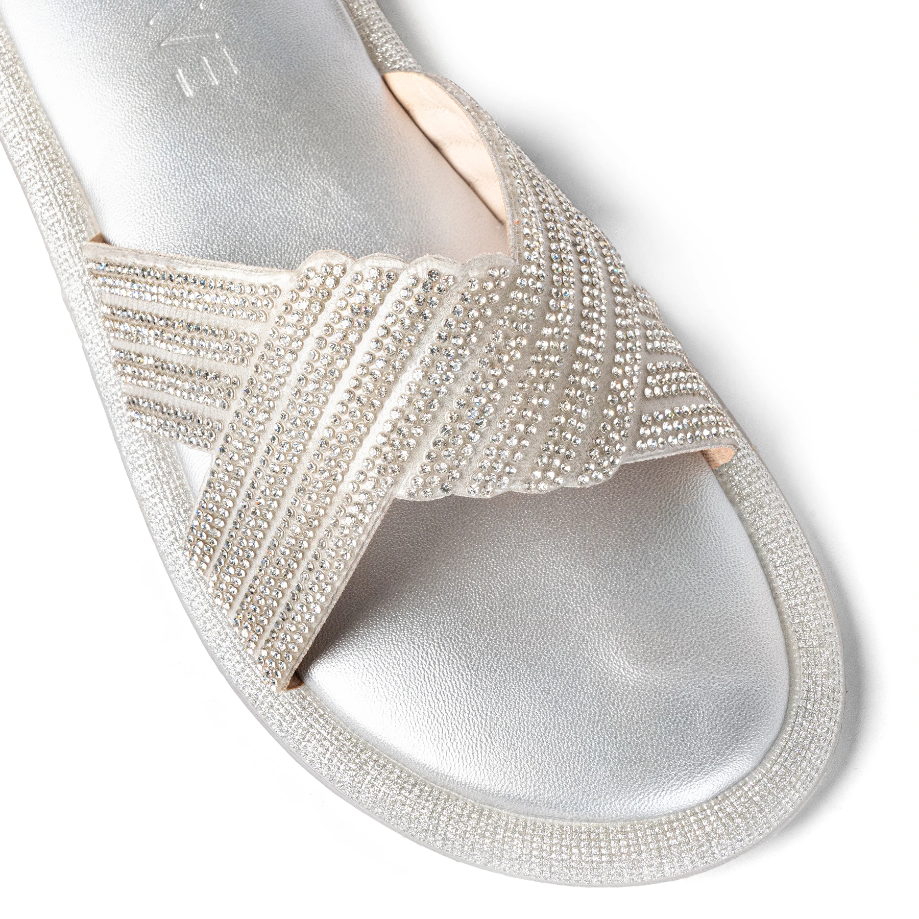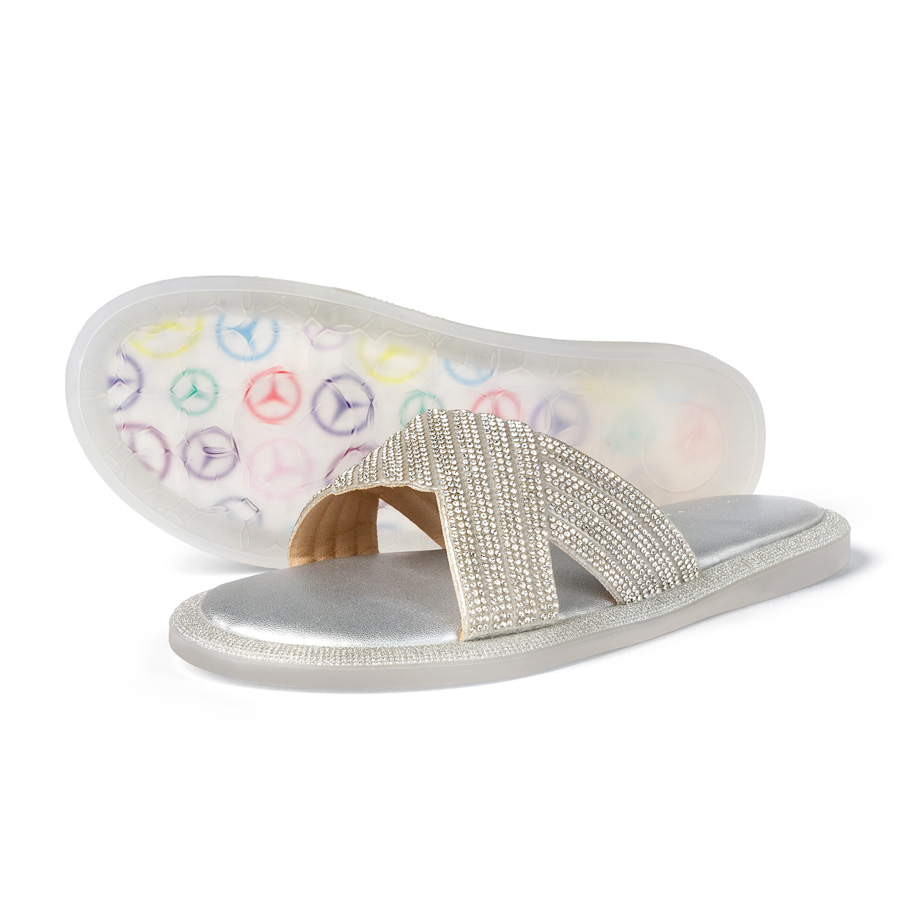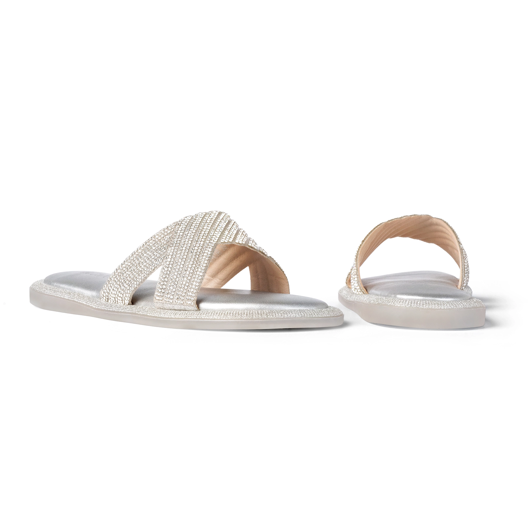 Upper Material – Crystal detailed crisscross strap in rubber upper
