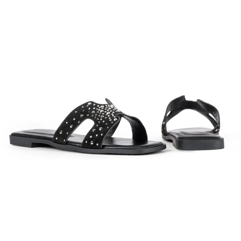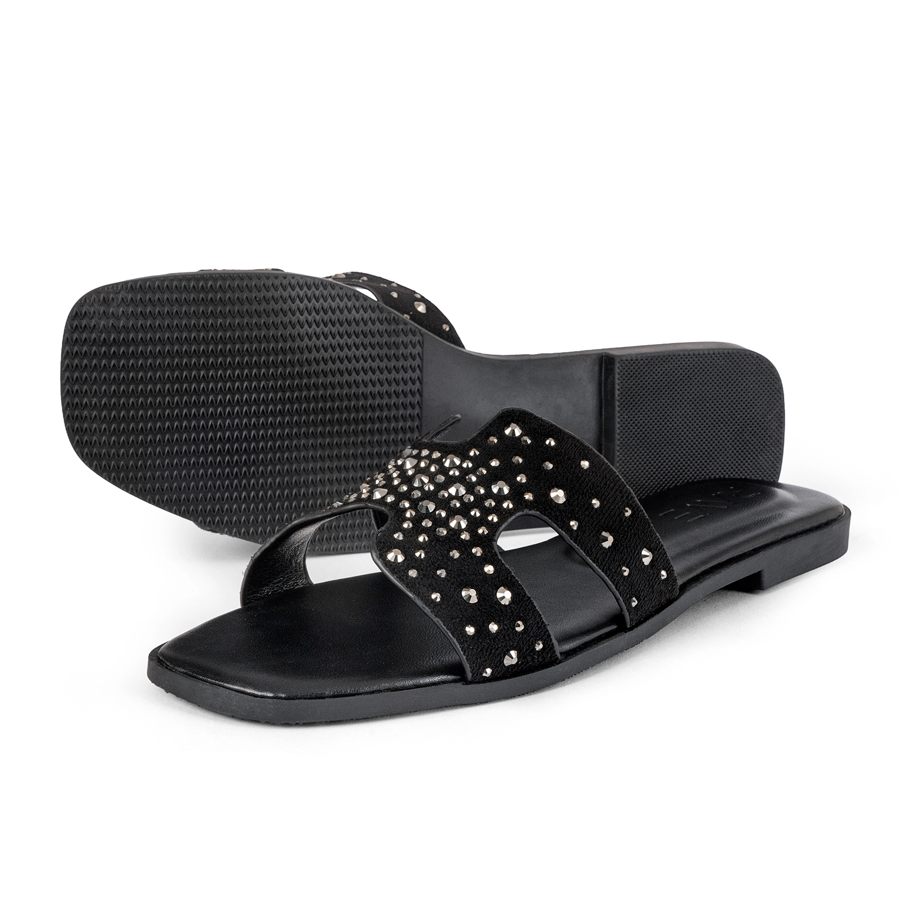 Crystal Embellished Slide Flat Sandal | Gun Tk. 2,450