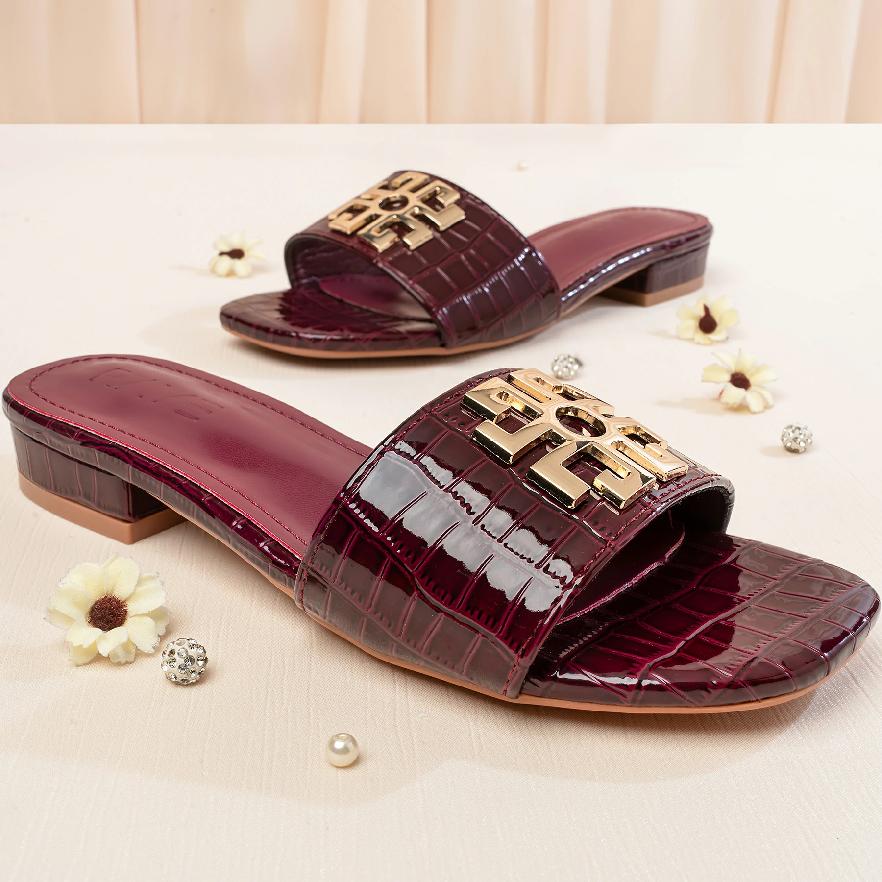 Metal Embellished Casual Flat Sandal | Maroon