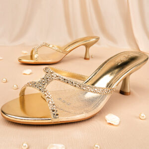 Peep Toe Crystal Detailed Spool Heel | Gold Tk. 3,400