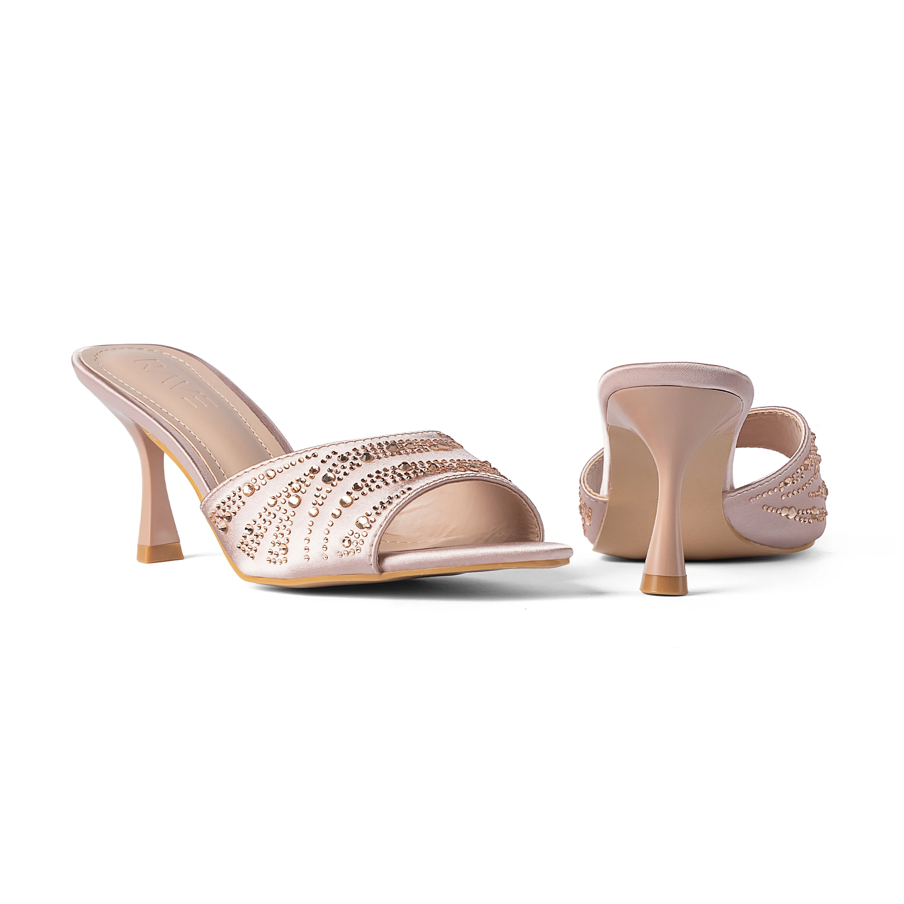 Pointy Peep Toe Crystal Detailed Spool Heel | Taupe Tk. 3,500