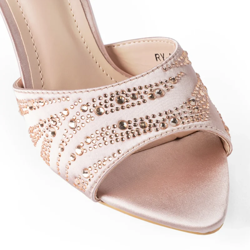 Pointy Peep Toe Crystal Detailed Spool Heel | Rose Gold