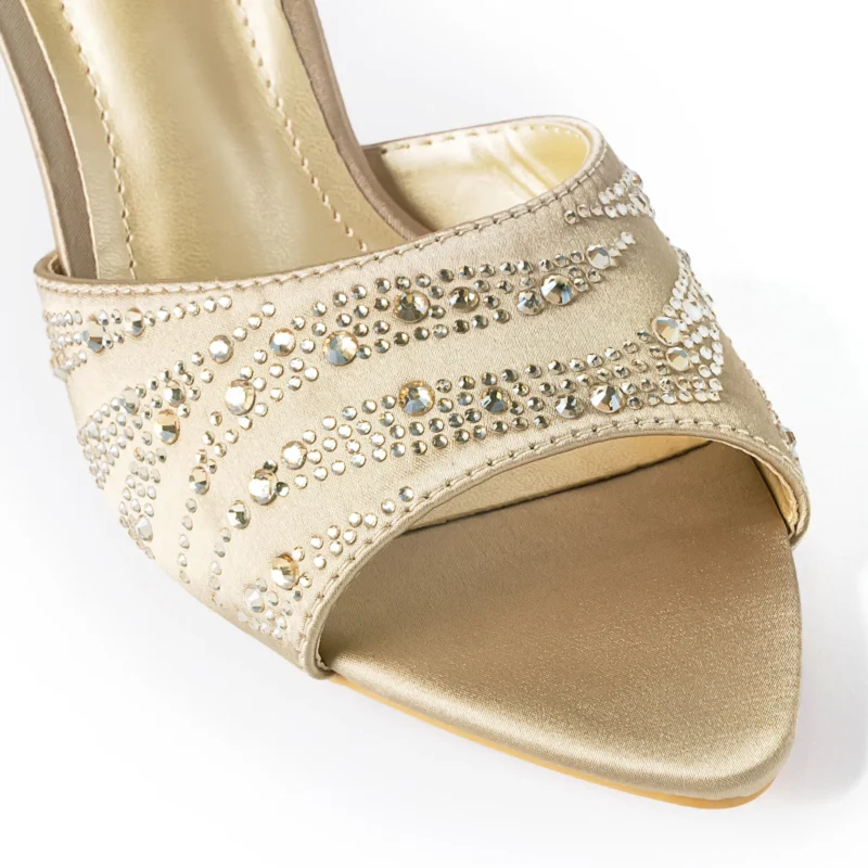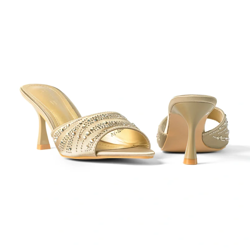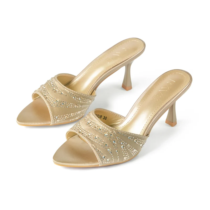 Pointy Peep Toe Crystal Detailed Spool Heel | Rose Gold Tk. 3,500