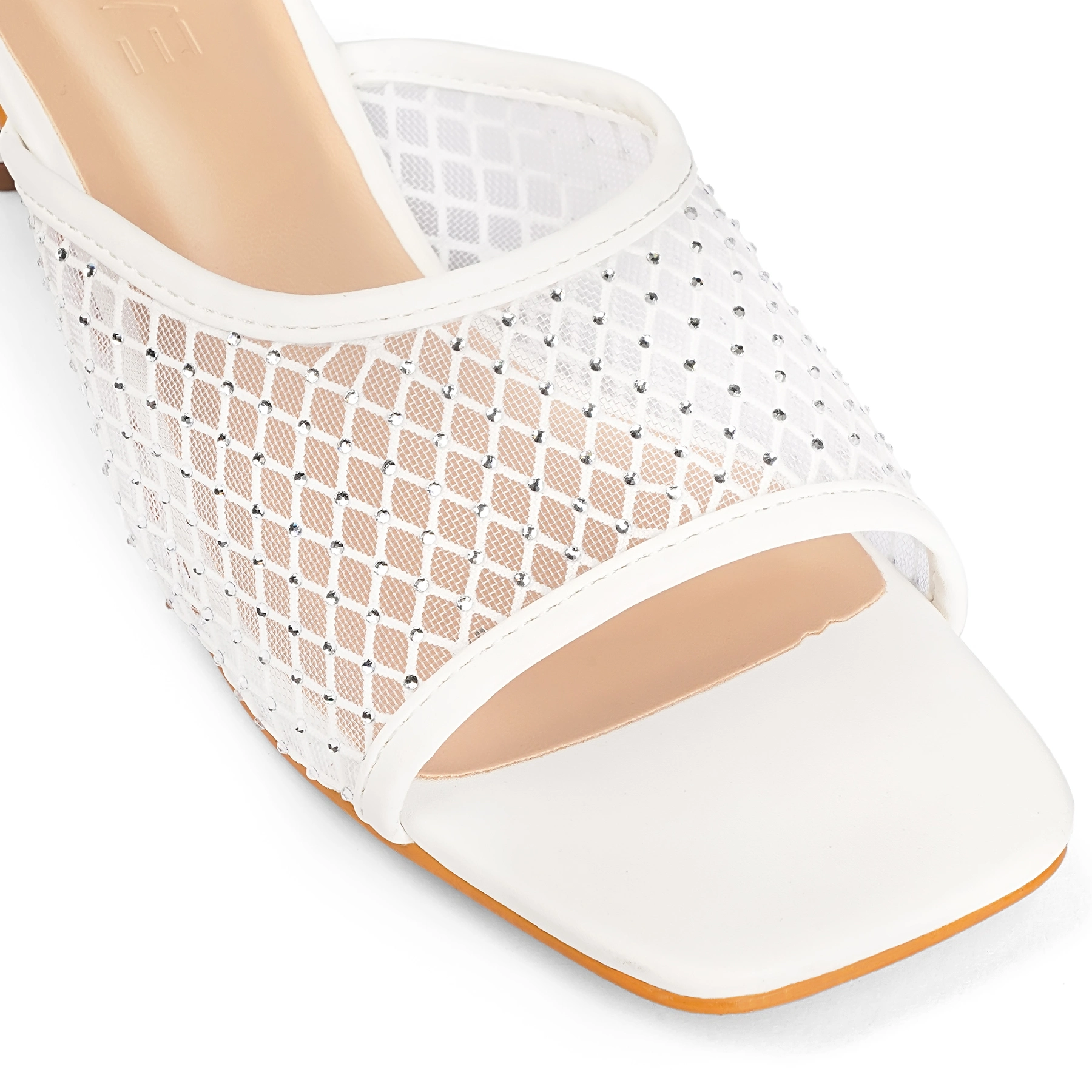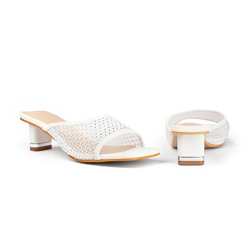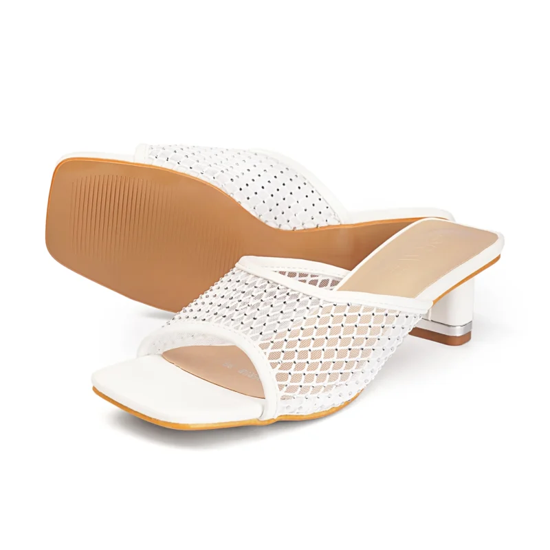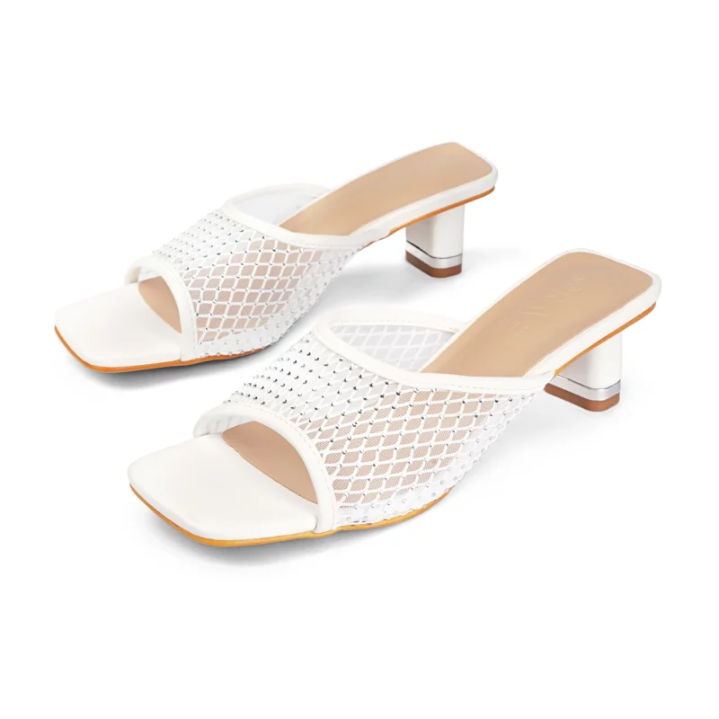 Square Toe Crystal Detailed Heel | White