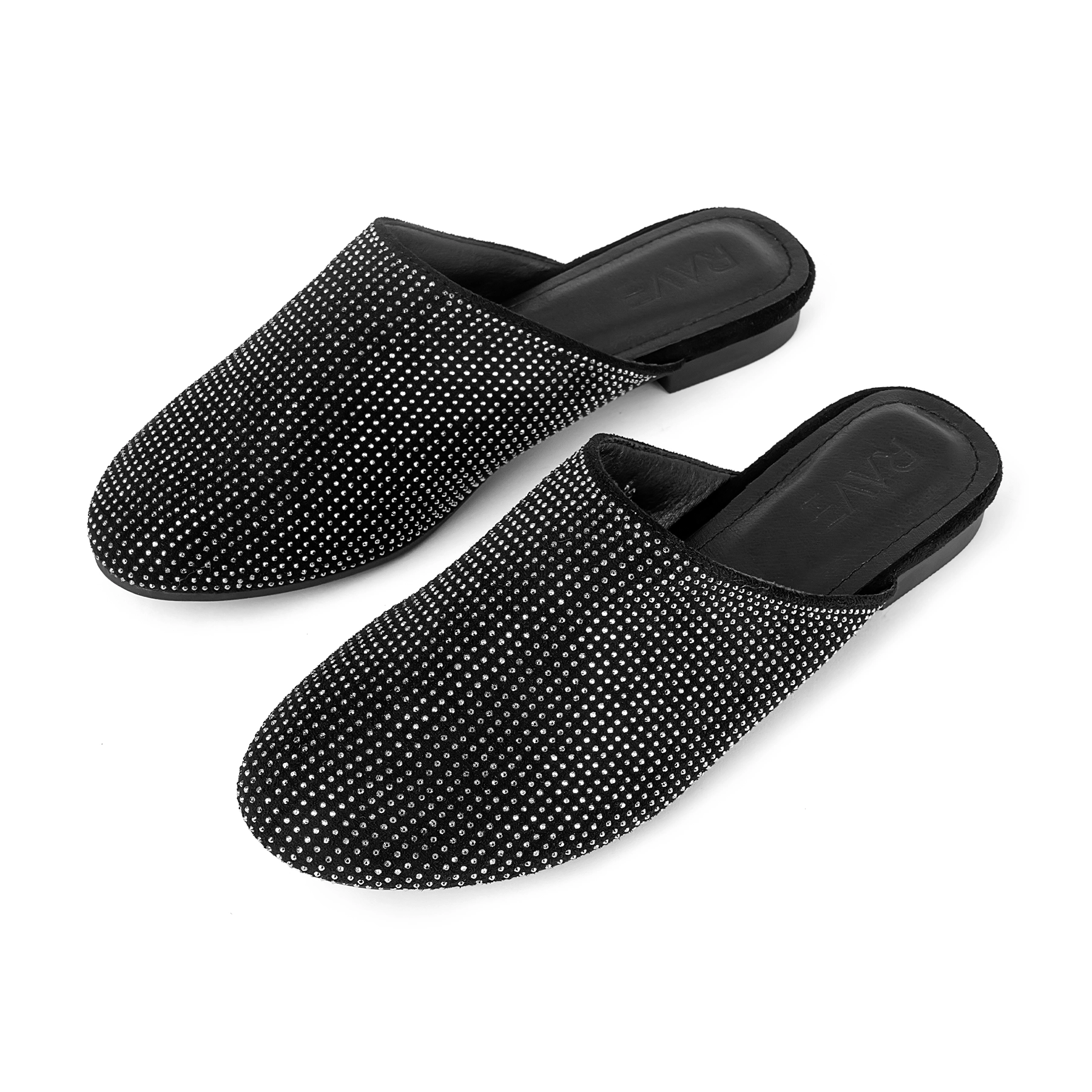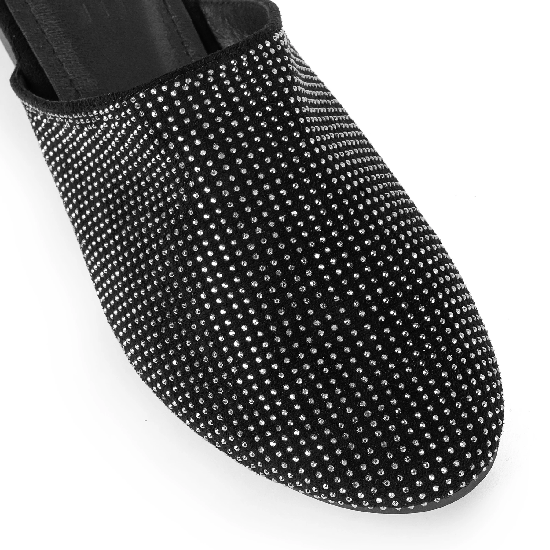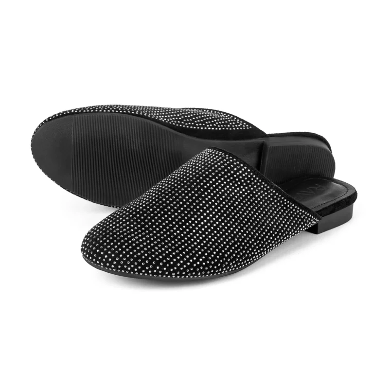Suede mule flat with crystal details.