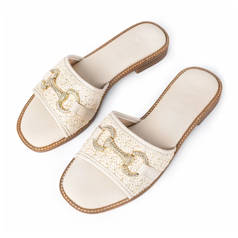 Crystal Embellished Flat Sandal | White Tk. 2,750